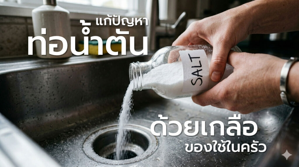 ทุกบ้านอาจเคยประสบปัญหาท่อน้ำตัน จากการอุดตันของท่อน้ำทิ้งจากอ่างล้างจาน หรืออ่างล้างมือที่ใช้เป็นประจำ เพราะมีเศษอาหาร เศษขยะ หรือคราบไขมันต่างๆ ตกค้าง และสะสมอยู่ตามข้อต่อของท่อน้ำ ทำให้น้ำไหลไม่สะดวก เราสามารถป้องกันปัญหาท่อน้ำตันไม่ให้เกิดขึ้นได้ โดยใช้เกลือปริมาณมากๆใส่ลงไปในท่อน้ำ แล้วใช้น้ำร้อนจัดเทราดตามลงไป (ไม่ควรใช้น้ำอุ่น เพราะจะทำให้เศษขยะที่ตกค้างอยู่ในท่อออกไม่หมด)เกลือและน้ำร้อนจัดจะช่วยกำจัดสิ่งที่สะสมอยู่ในท่อน้ำ และยังช่วยทำความสะอาด ท่อน้ำทิ้งไม่ให้มีเศษขยะตกค้างตามข้อต่อของท่อไปในตัวอีกด้วย ควรทำทุกๆสองถึงสามสัปดาห์ต่อหนึ่งครั้ง จึงจะป้องกันไม่ให้เกิดปัญหาท่อน้ำอุดตันมารบกวนได้
